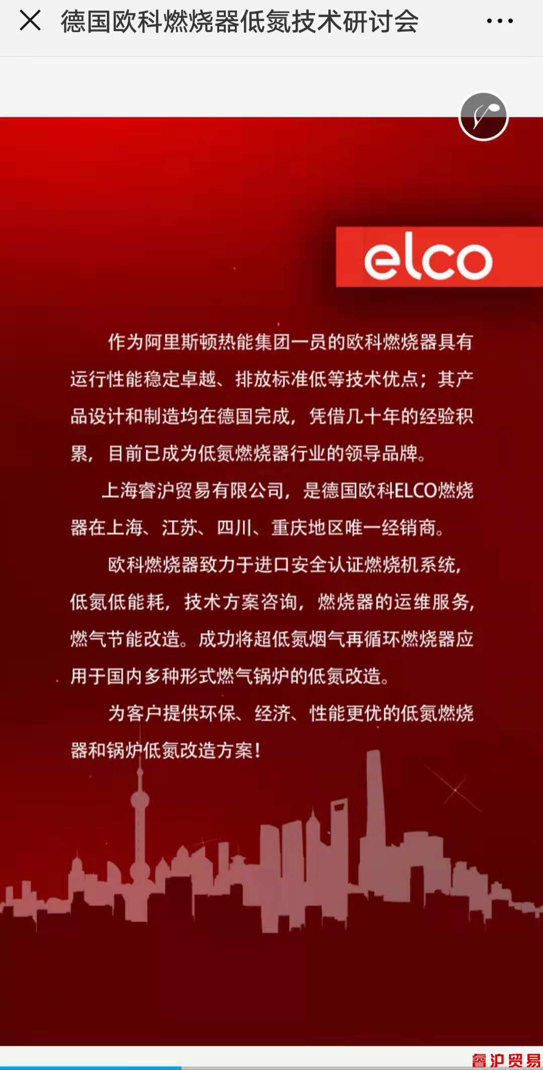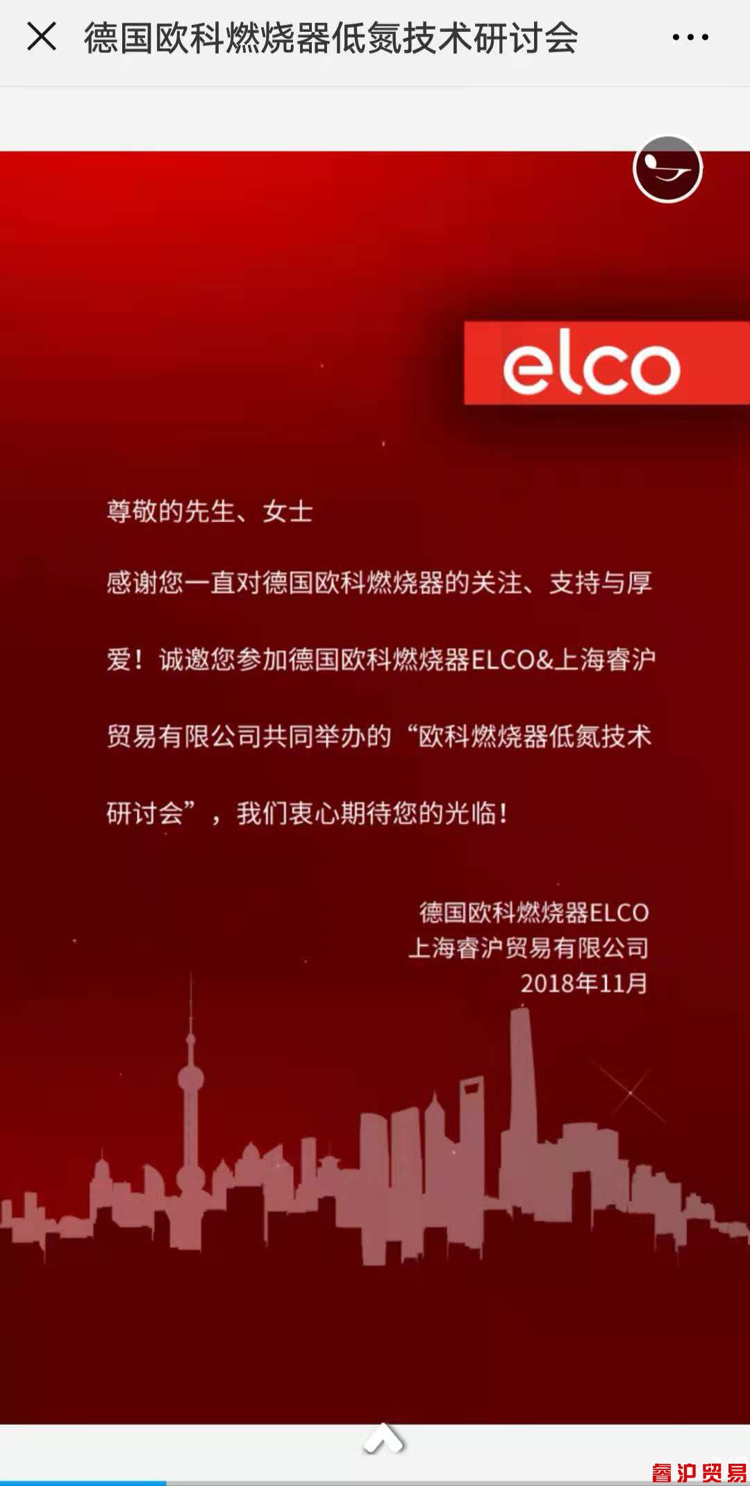 上海睿滬德國歐科燃燒器低氮技術研討會,于2018年11月26日,在上海大寧福朋喜來登酒店7樓大宴會舉行。誠邀您的光臨。邀請函詳情